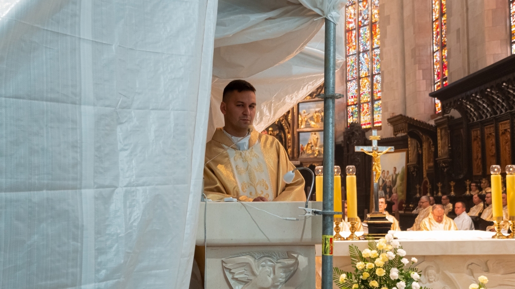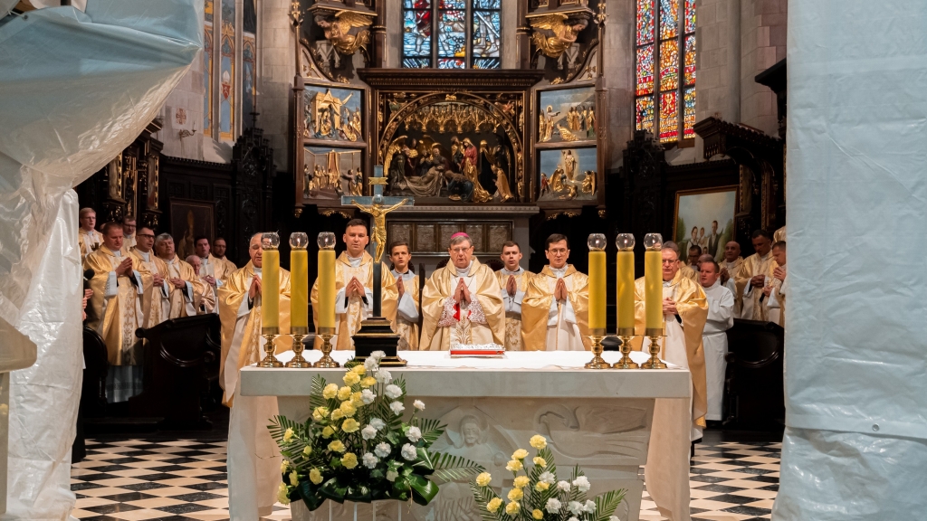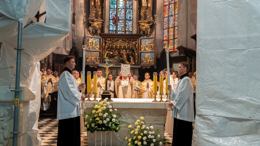 Po nabożeństwie odbyła się uroczysta Msza Święta pod przewodnictwem J.E. ks. bp. Krzysztofa Chudzio. W swojej homilii ks. Biskup zwrócił uwagę na doniosłość powołania kapłańskiego oraz na ważną rolę osób modlących się za powołanych do służby Bożej, z którymi stanowią jedno Mistyczne Ciało Chrystusa.