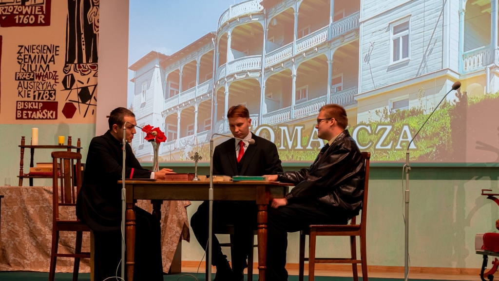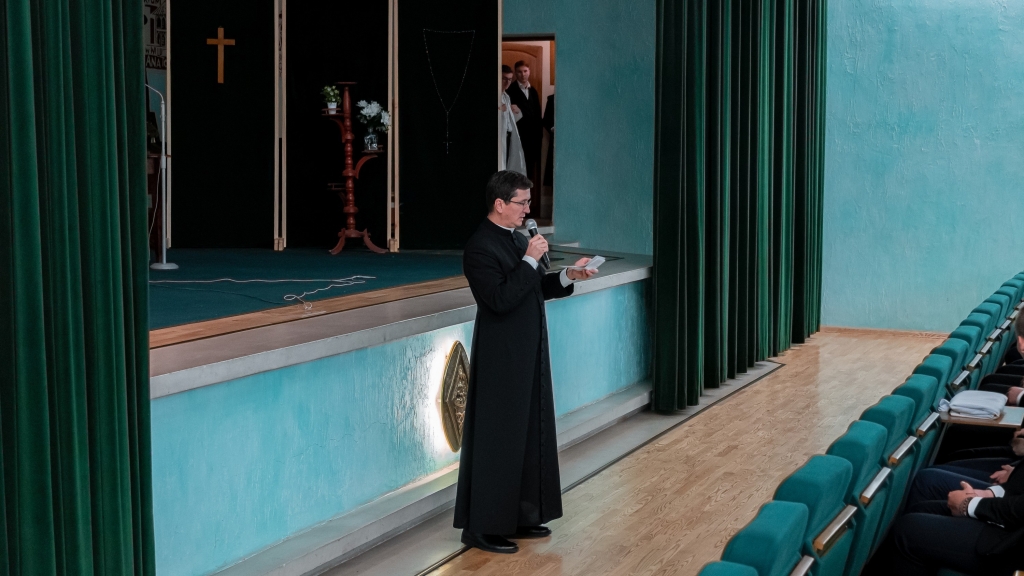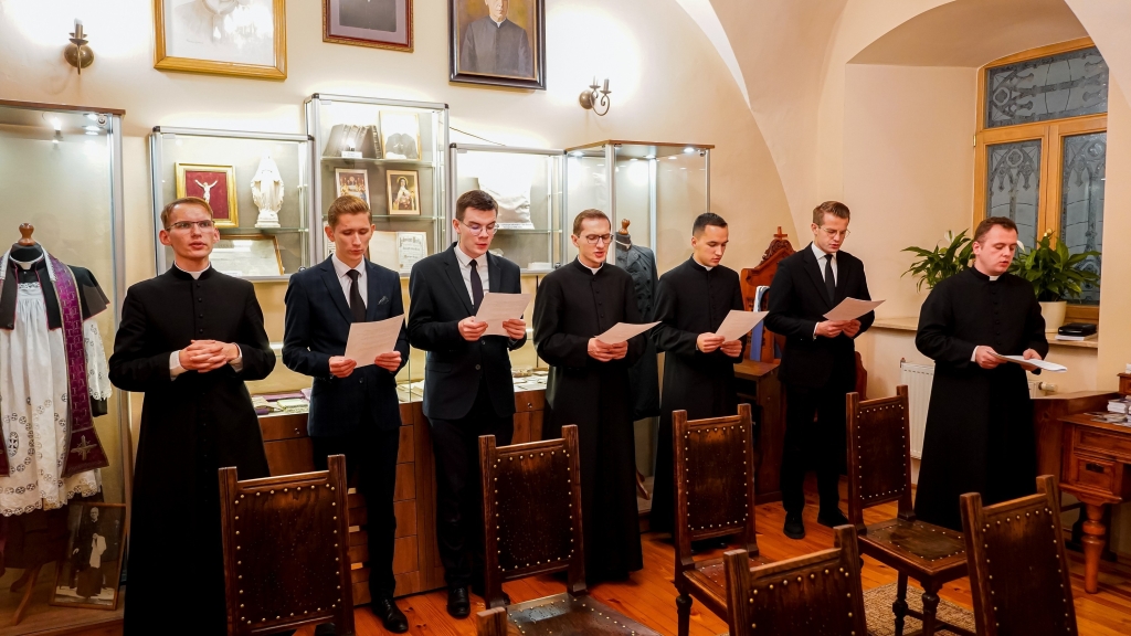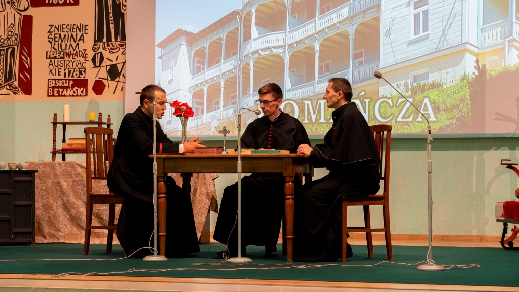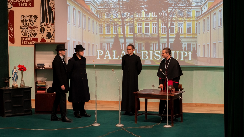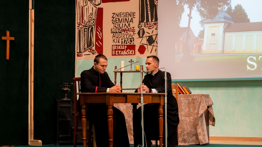 Następnym punktem programu był poczęstunek oraz powitanie uczestników pielgrzymki przez rektora WSD ks. dr Konrada Dyrdę. Potem alumni kursu czwartego i piątego przedstawili gościom historię internowania bł. ks. prymasa Stefana Wyszyńskiego w sztuce teatralnej pt. „Moc milczenia”. Całość pielgrzymki zwieńczyła wspólna modlitwa.