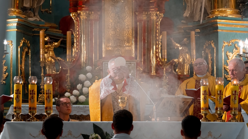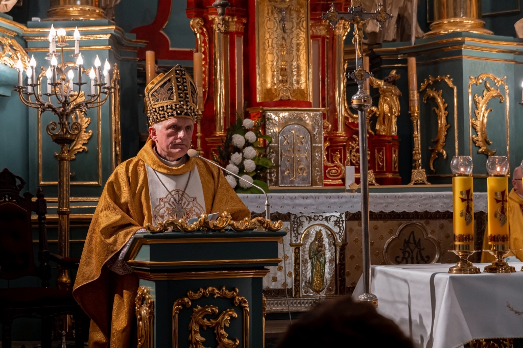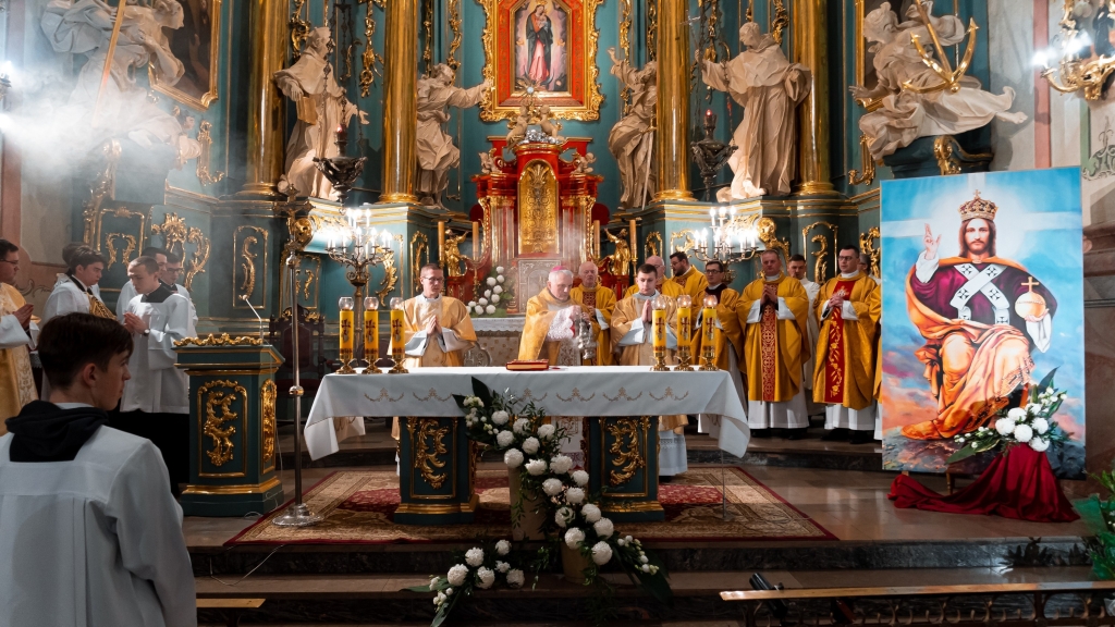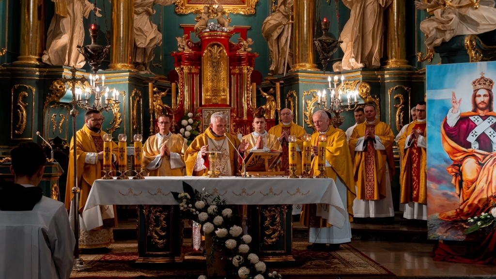 Naszej modlitwie przewodniczył J.E. ks. bp Stanisław Jamrozek, który w wygłoszonym słowie podkreślił konieczność przyjęcia Jezusa Chrystusa jako Króla naszego życia. Ważnym przesłaniem skierowanym do nas w homilii ks. Biskupa była zachęta, by postawić Jezusa w centrum naszej egzystencji, a co za tym idzie kształtować swoje życiowe wybory i postawy według Jego Ewangelii. Wszystko to po to, by stawać się wiernym apostołem królestwa Bożego.