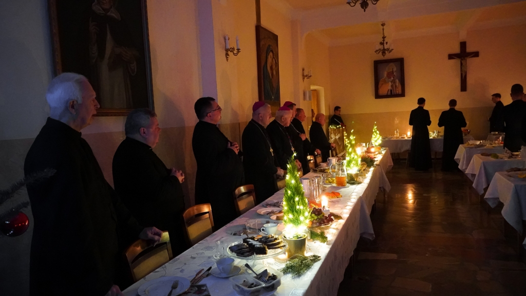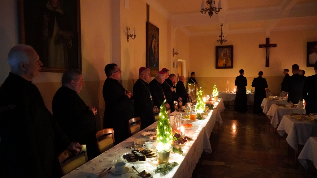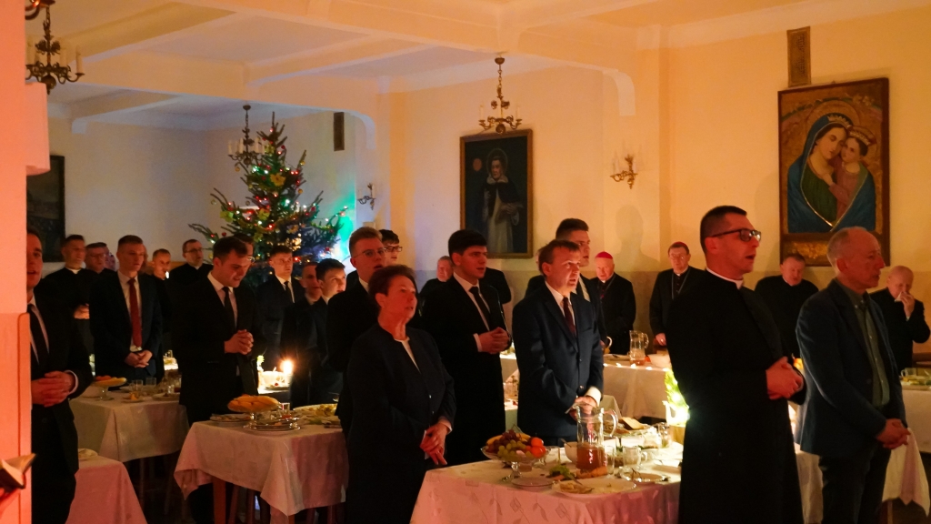 Pośród nas byli obecni księża arcybiskupi, biskupi, profesorowie, przełożeni, siostry zakonne oraz pracownicy świeccy naszego Seminarium. To w tym gronie dzieliliśmy się opłatkiem, składaliśmy sobie życzenia, kolędowaliśmy oraz zasiadaliśmy do wspólnej wigilii.