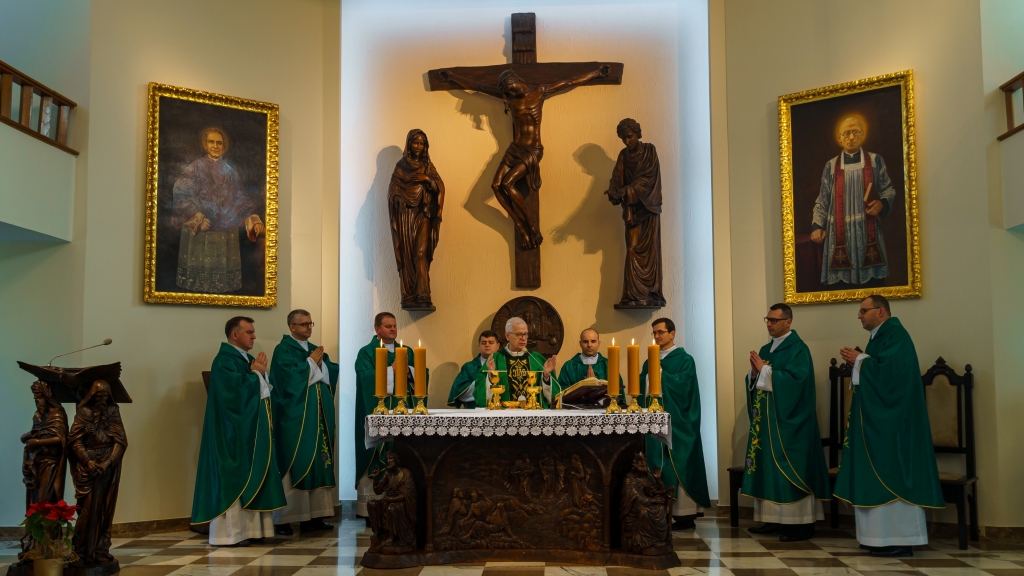 Pierwszym punktem programu była konferencja księdza Rektora, po której odbyła się modlitwa różańcowa. Centralną część spotkania stanowiła Msza Święta koncelebrowana przez księży przełożonych. Po wspólnym obiedzie, bracia diakoni wystawili dla przybyłych gości jasełka w auli Instytutu Teologicznego.
