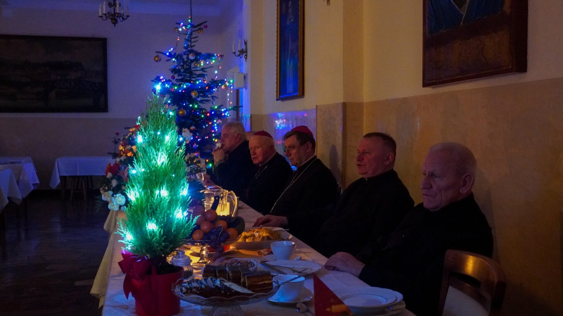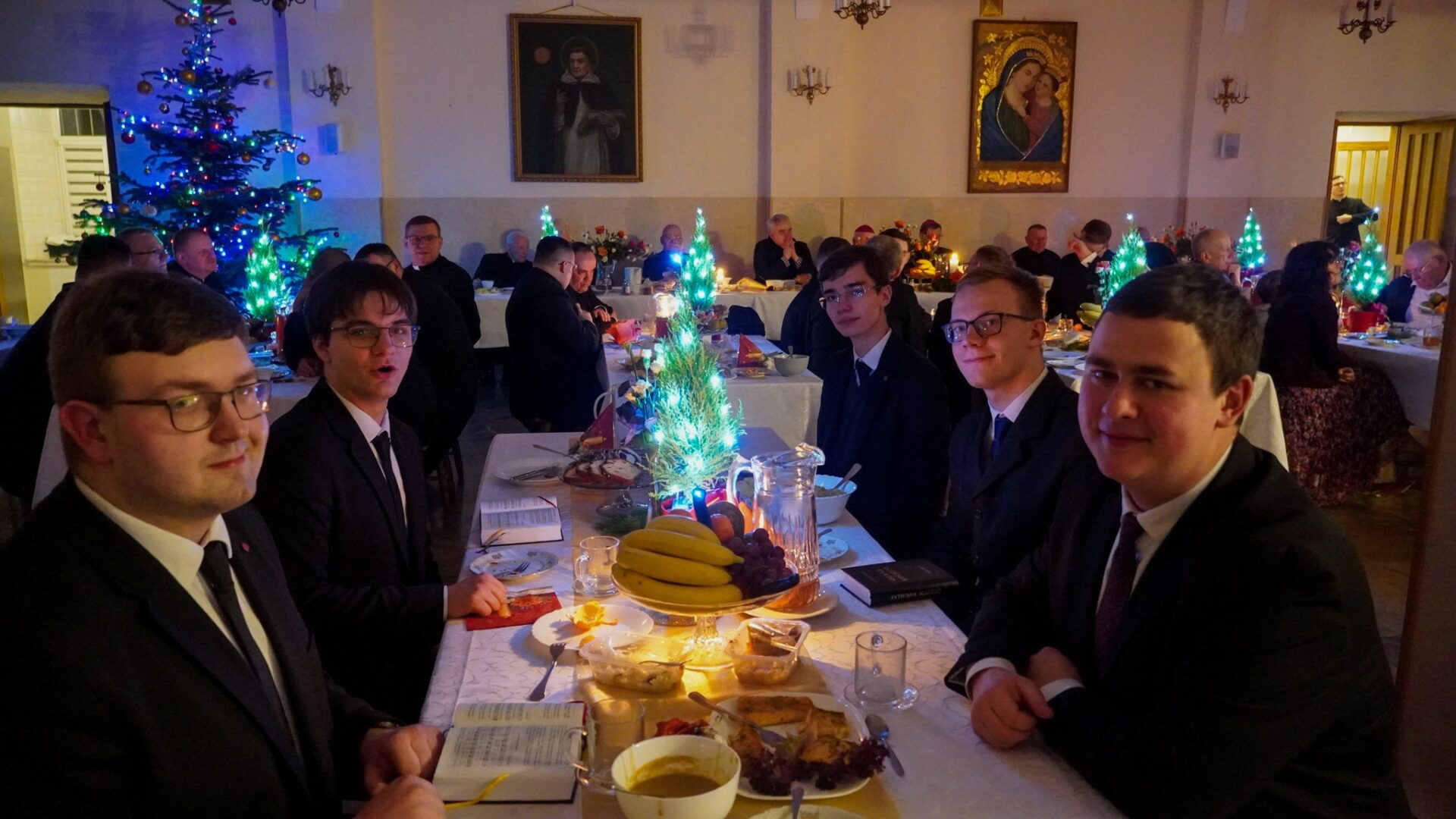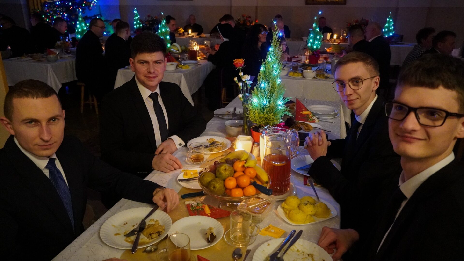 Wśród zgromadzonych obecni byli ks. abp Adam Szal, ks. bp Krzysztof Chudzio, profesorowie, przełożeni, siostry zakonne oraz pracownicy świeccy naszego Seminarium. W tym gronie dzieliliśmy się opłatkiem, składaliśmy sobie serdeczne życzenia, wspólnie kolędowaliśmy i zasiedliśmy do wigilijnego stołu.