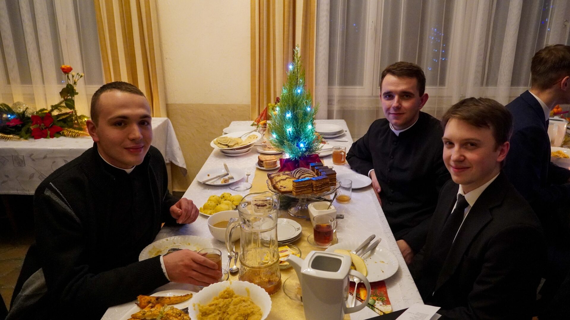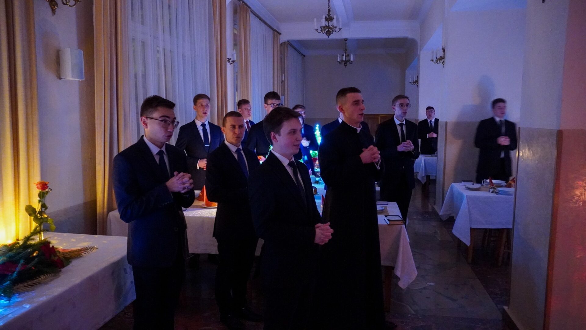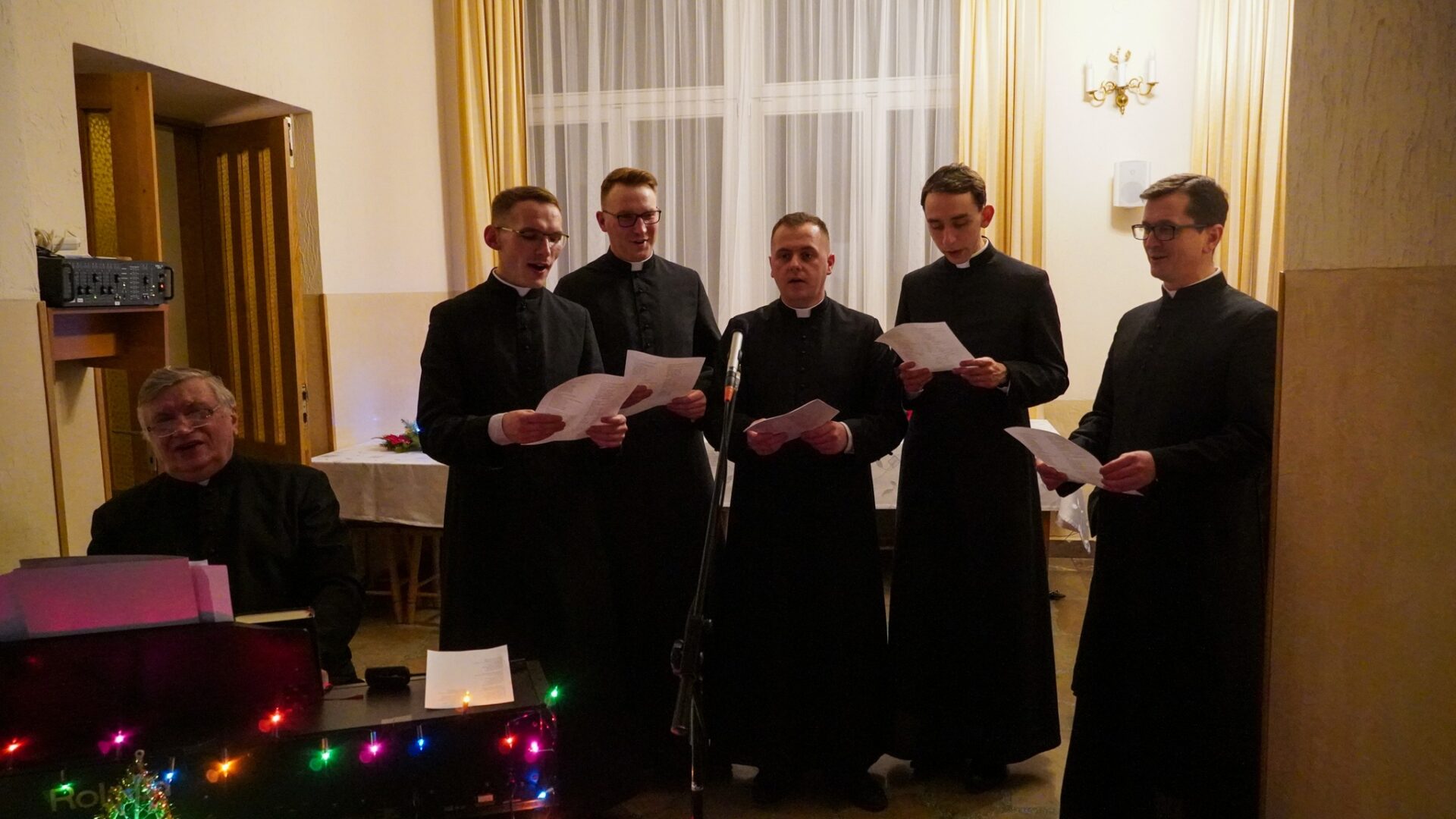 Na zakończenie, pragnąc podtrzymać radosną atmosferę świąt Bożego Narodzenia, udaliśmy się z kolędą do księży przełożonych i profesorów, by również z nimi dzielić się radością z narodzenia naszego Pana.