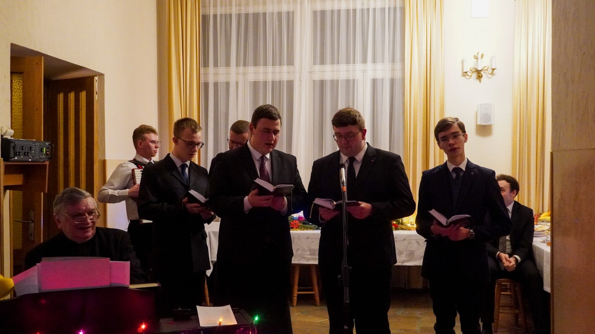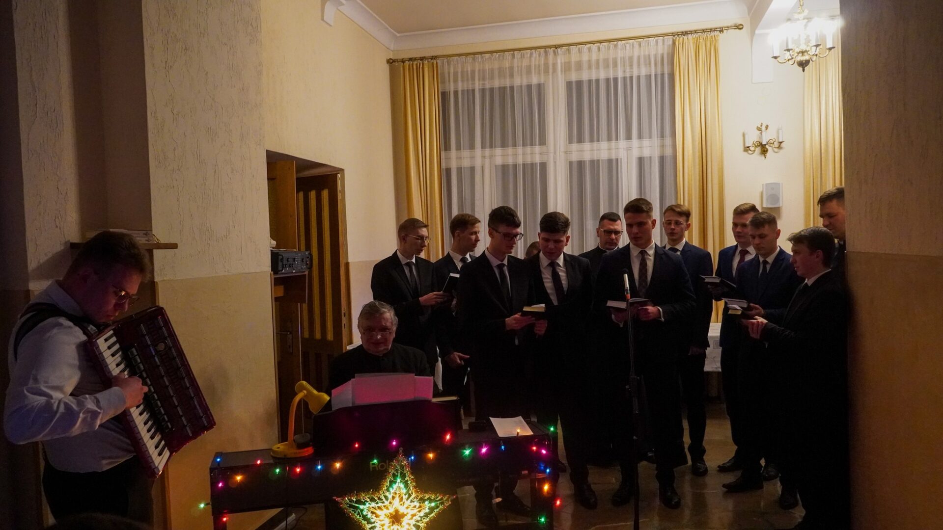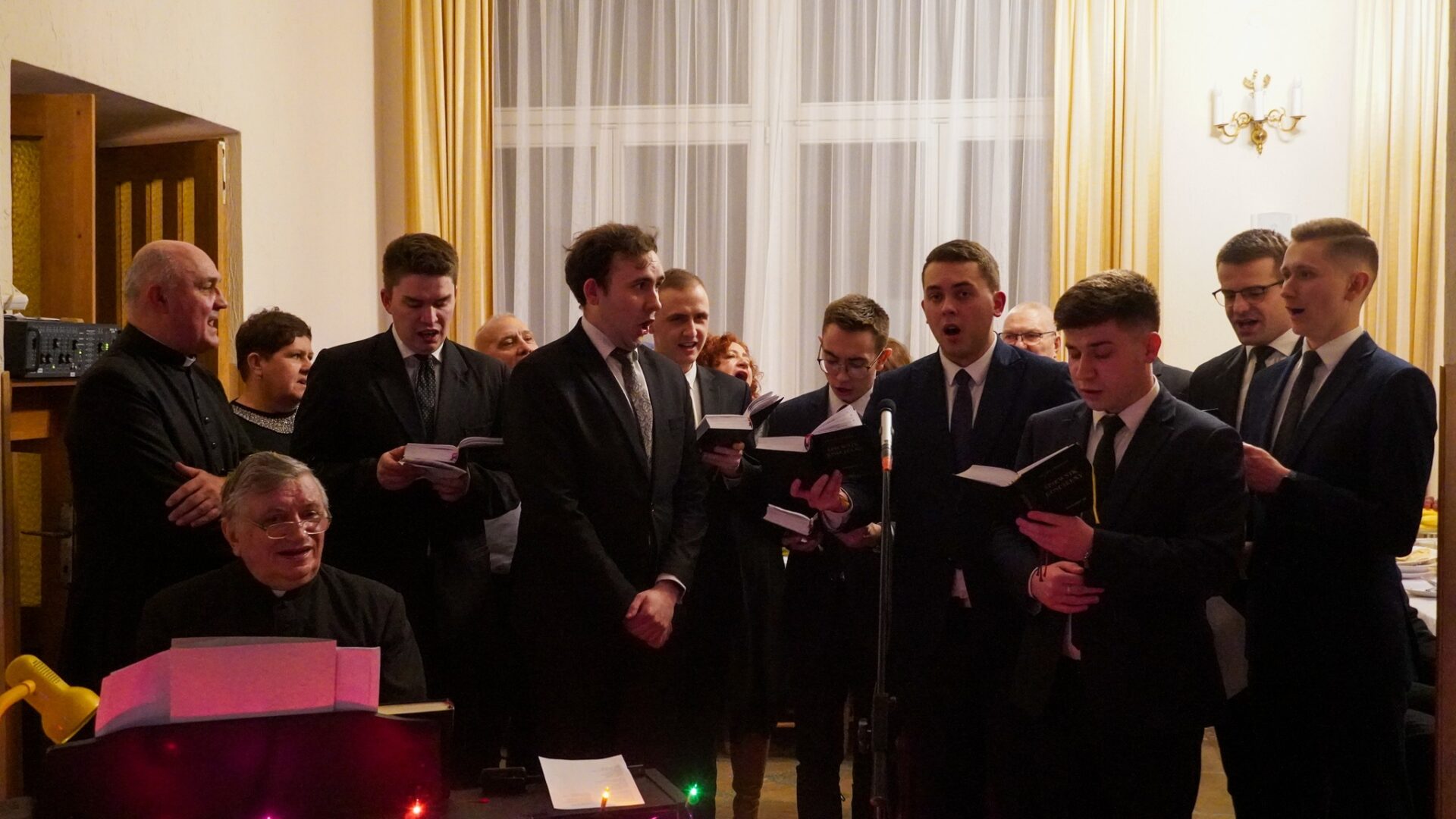 Na zakończenie, pragnąc podtrzymać radosną atmosferę świąt Bożego Narodzenia, udaliśmy się z kolędą do księży przełożonych i profesorów, by również z nimi dzielić się radością z narodzenia naszego Pana.