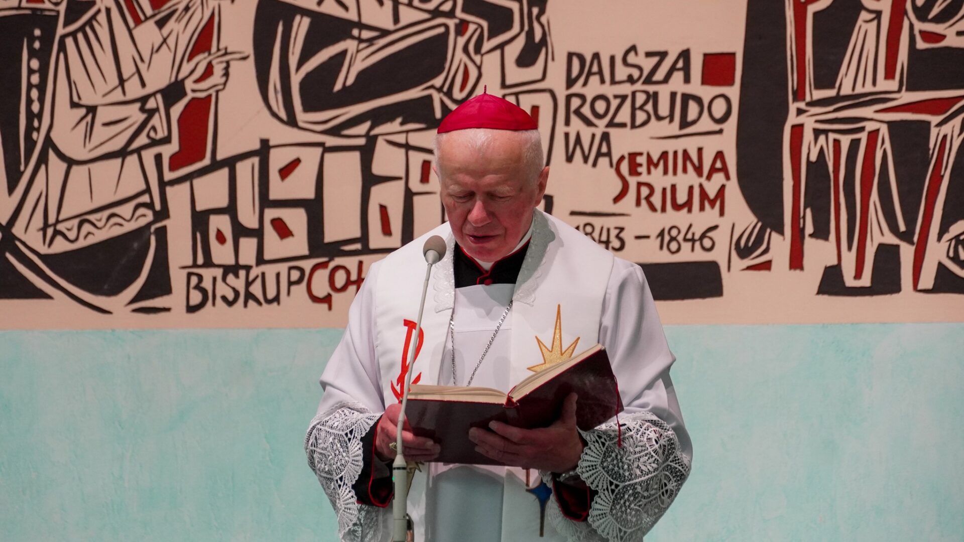 Świąteczne spotkanie rozpoczęło się przedstawieniem jasełkowym przygotowanym przez braci diakonów. Kolejnym punktem programu było odsłonięcie nowego wizerunku ściennego wykonanego techniką sgraffito w auli Instytutu Teologicznego, wpisującego się w ciąg już istniejących przedstawień. Ukazuje on postacie św. Jana Pawła II, abp. Józefa Michalika i abp. Adama Szala oraz wydarzenia kanonizacji św. Jana z Dukli i beatyfikacji Rodziny Ulmów.
