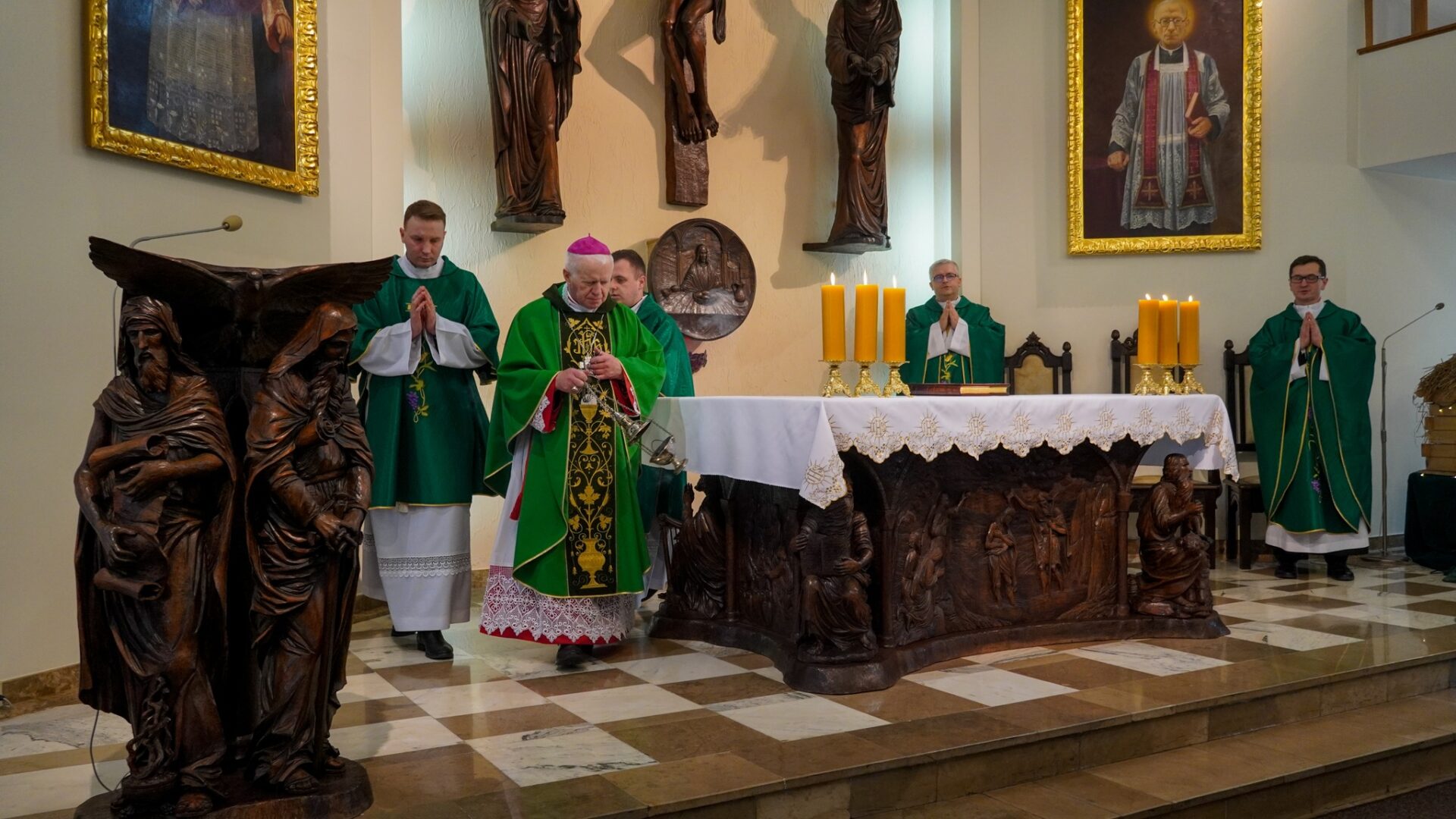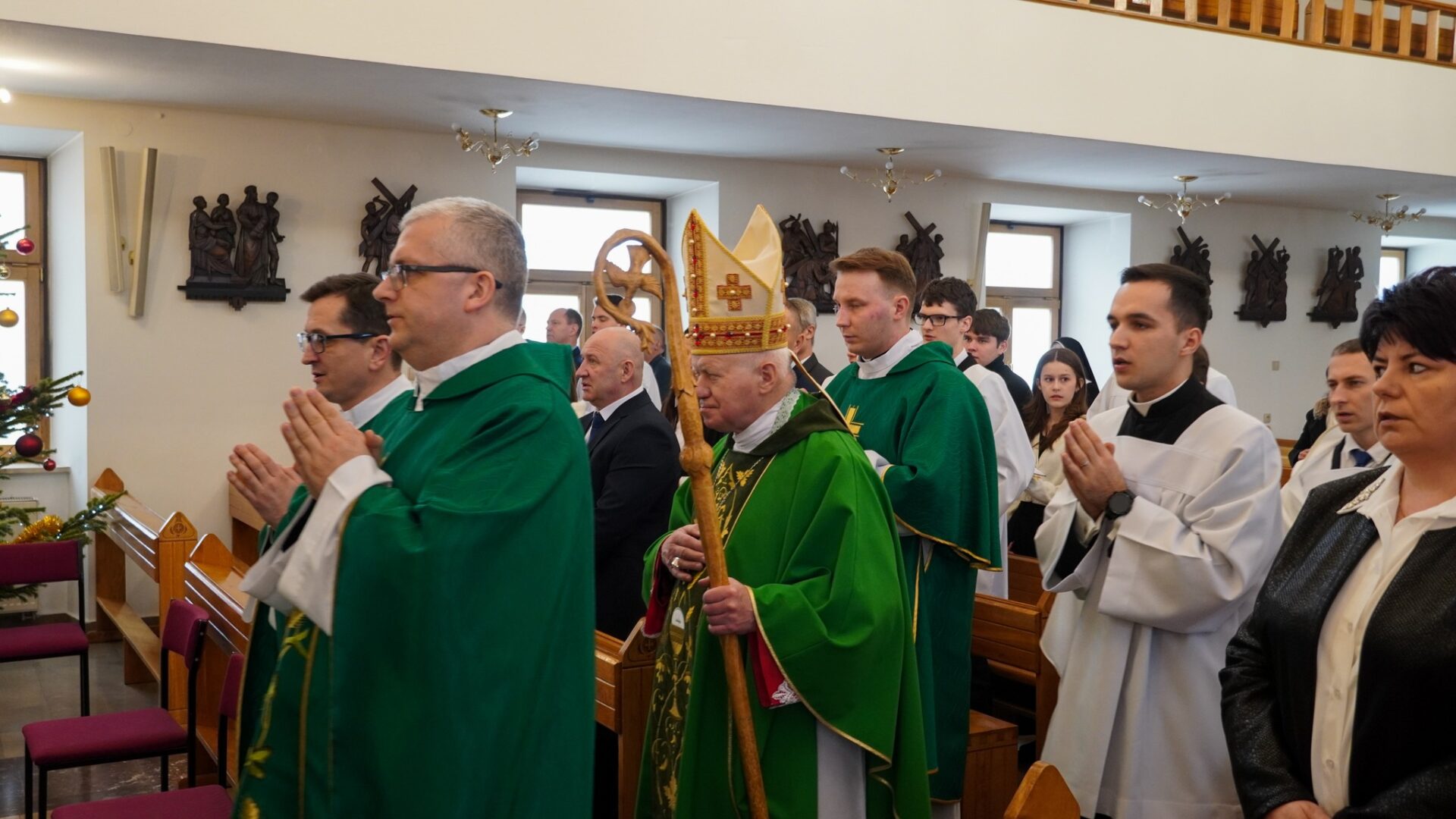 O godz. 11:15 w kaplicy górnej uczestniczyliśmy w Eucharystii, której przewodniczył ks. abp Adam Szal. W czasie Mszy Świętej ks. Arcybiskup nawiązał do dzisiejszej daty – urodzin bł. ks. Jana Balickiego – oraz wygłosił homilię, w której odniósł się do tematu powołania, podkreślając jego znaczenie w życiu Kościoła.